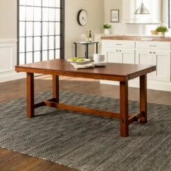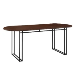 71″ Tanya Modern Farmhouse Metal Stretcher Dining Table Dark Brown Oak – Saracina Home