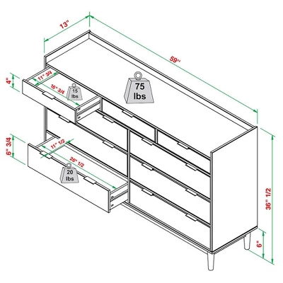 Mid-Century Modern Solid Wood 9 Drawer Horizontal Dresser – Saracina Home